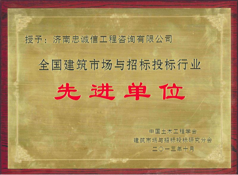 全國建筑市場與招標(biāo)投標(biāo)行業(yè)先進單位