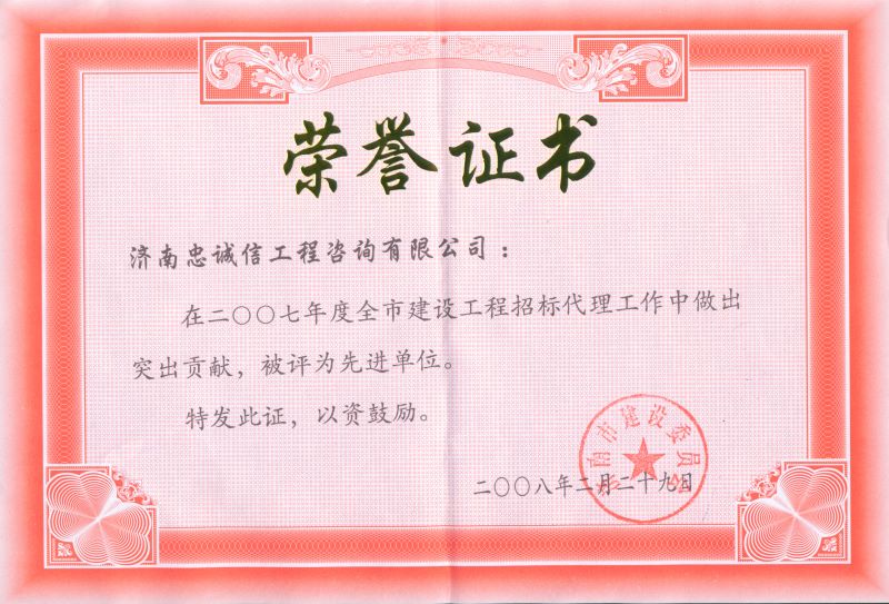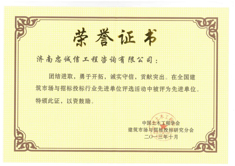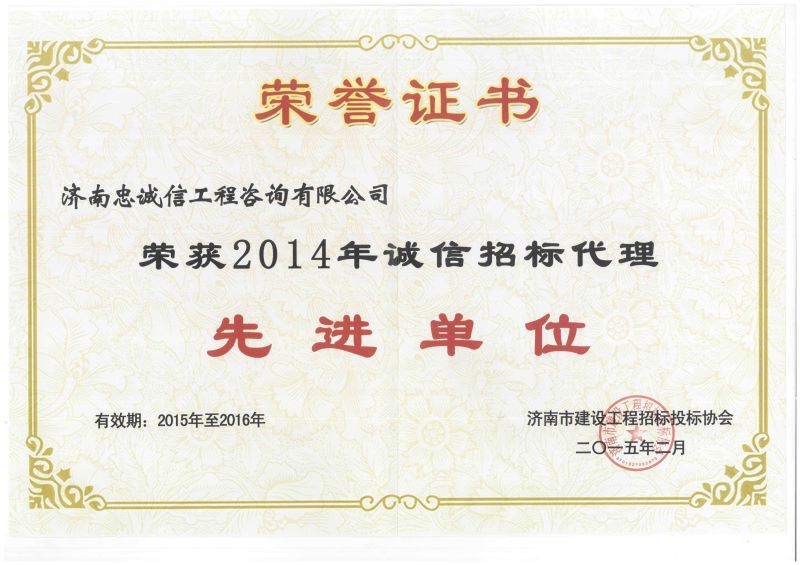 誠信招標(biāo)代理先進單位