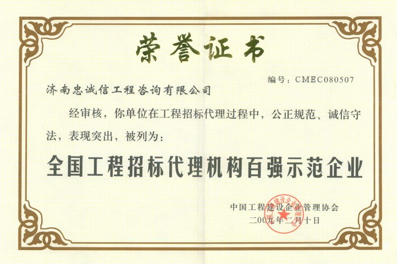 全國工程招標(biāo)代理機構(gòu)百強示范企業(yè)