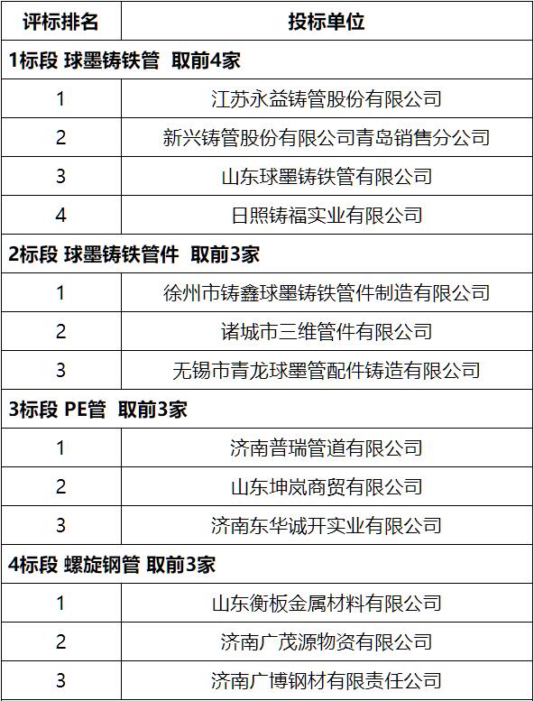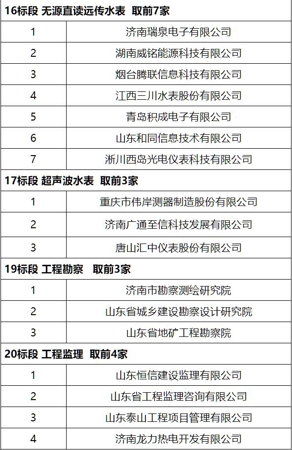 濟(jì)南水務(wù)集團(tuán)有限公司供應(yīng)商優(yōu)選評(píng)標(biāo)結(jié)果