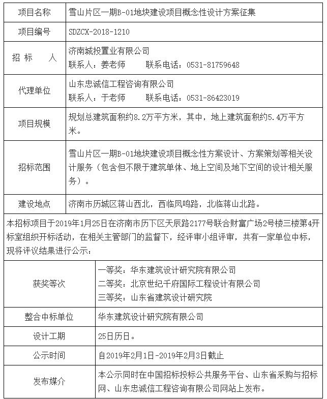 濟南城投置業有限公司造價服務單位遴選中標公示