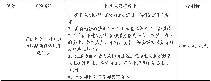 凡有意參加者,報名及領取文件時請攜帶企業法人營業執照、地基與基礎工程專業承包二級及以上資質證書(原件或加蓋公章的復印件)或“濟南市建筑垃圾管理服務信息平臺”公示的建筑垃圾運輸企業信息詳情截圖(加蓋單位公章)、項目負責人建造師證與安全生產考核合格證書(B類)的原件及復印件一套(加蓋公章),以及法定代表人證書原件或法定代表人授權委托書原件及身份證原件到濟南市歷下區山大南路60號建工大廈703(山東忠誠信工程咨詢有限公司)報名。