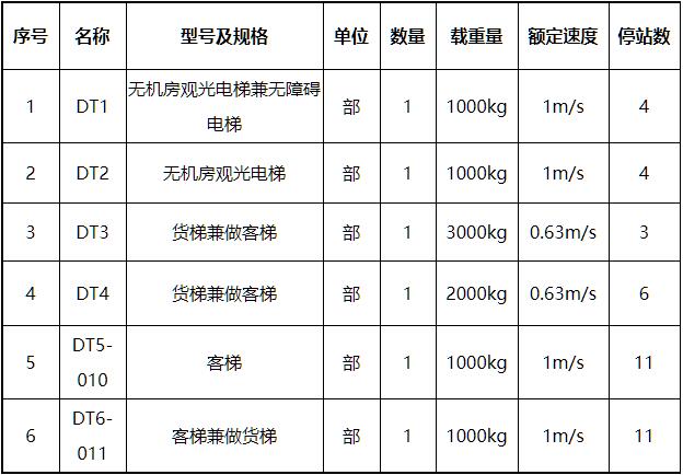 2.1采購需求表:本次電梯設備采購共6部,內容如下: