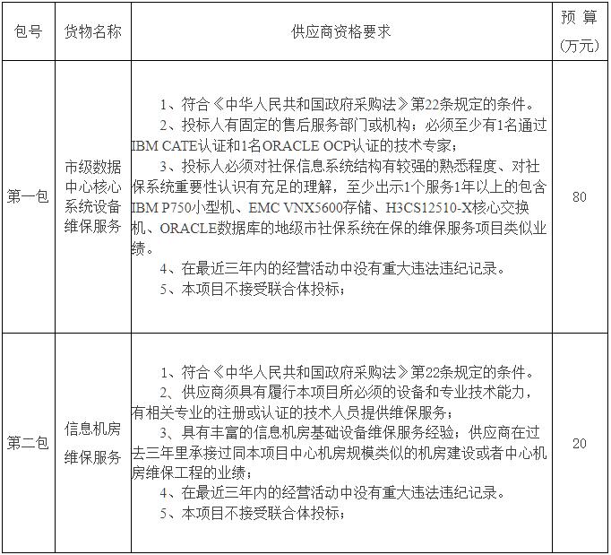 聯系電話:山東忠誠信工程咨詢有限公司受菏澤市人力資源和社會保障局委托,現對菏澤市人力資源和社會保障局市級數據中心核心系統設備及信息機房維保服務項目采購進行公開招標,歡迎有能力的供應商前來投標。